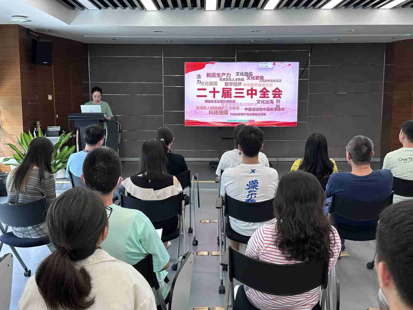 与会人员深入学习《决定》内容。。。。党的二十届三中全会提出必须增强文化自信,,,,发展社会主义先进文化,,弘扬革命文化,,,,传承中华优秀传统文化,,,加快适应信息技术迅猛发展新形势,,,构建更有效力的国际传播体系,,这为广大文化产业工作者指明了奋斗方向。。。。