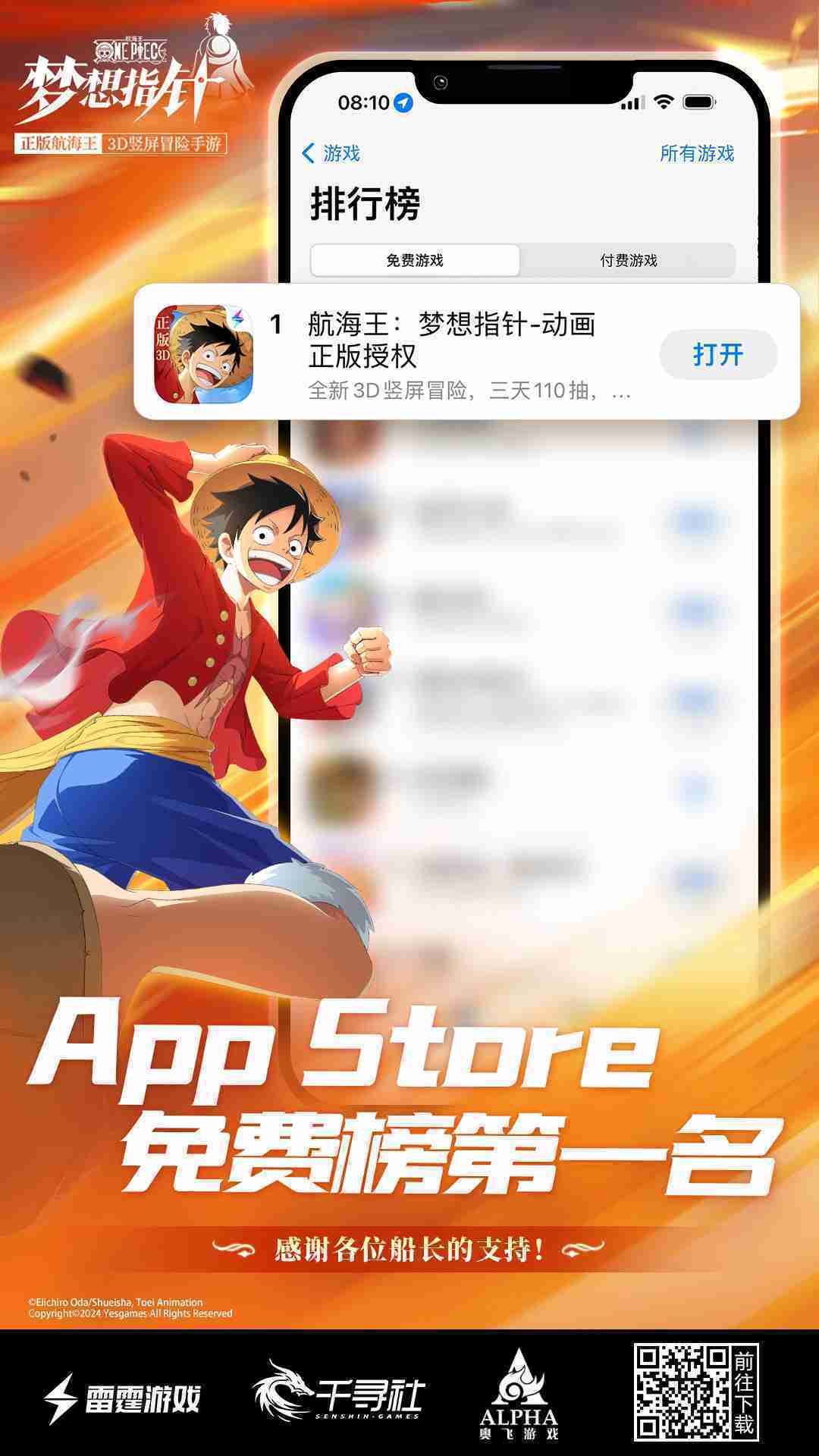 产品新闻 《航海王:::梦想指针》登顶App Store免费榜,,,公测福利汇总!!!